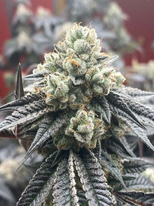 This is one of our favorite strains to take photos of. She has a great dark purple fade. For the lineage we are shocked that she only tests in the mid-20s but the smoke and flavor of this strain will leave you satisfied. Unfortunately, this strain does not wash well for hash rosin, the yields are extremely low. She is super easy to grow, and stays at a medium height.